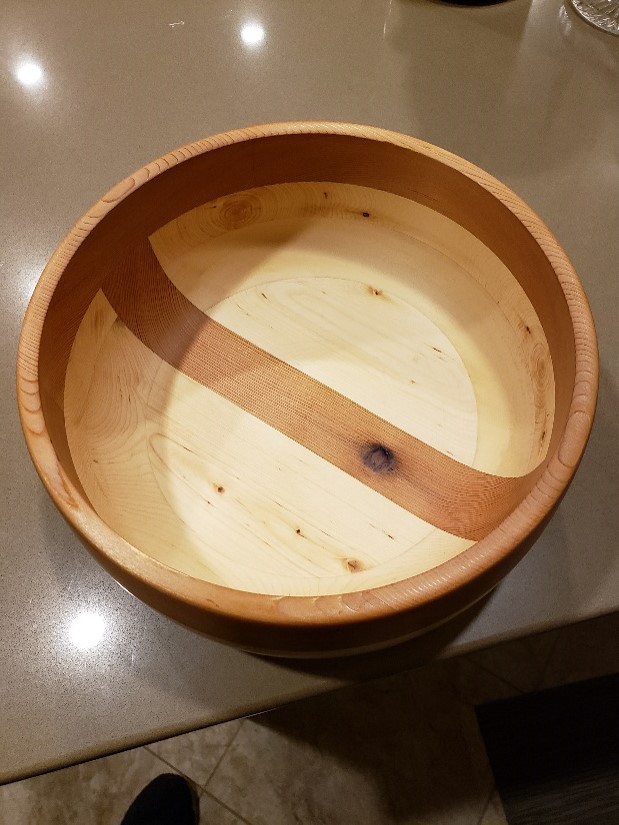 | Hand Turned Fruit Bowl by Terry Hines – Alaskan white cedar and red cedar with a beeswax finish |