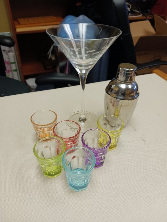 | Drinks Pack: 1 Martini Glass with Shaker, 6 Shot Glasses |