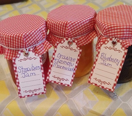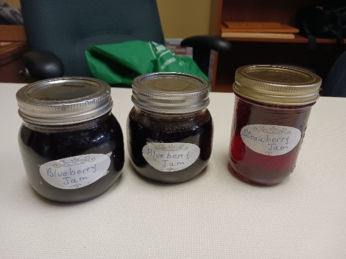 | Jam – 2 Blueberry, 1 Strawberry – made by Elizabeth MacGillvary |