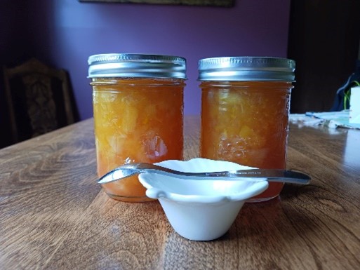 | 2 x 250ml jars of Peach Marmalade, includes 2 jam bowls and spoons – made by Janet Barker |